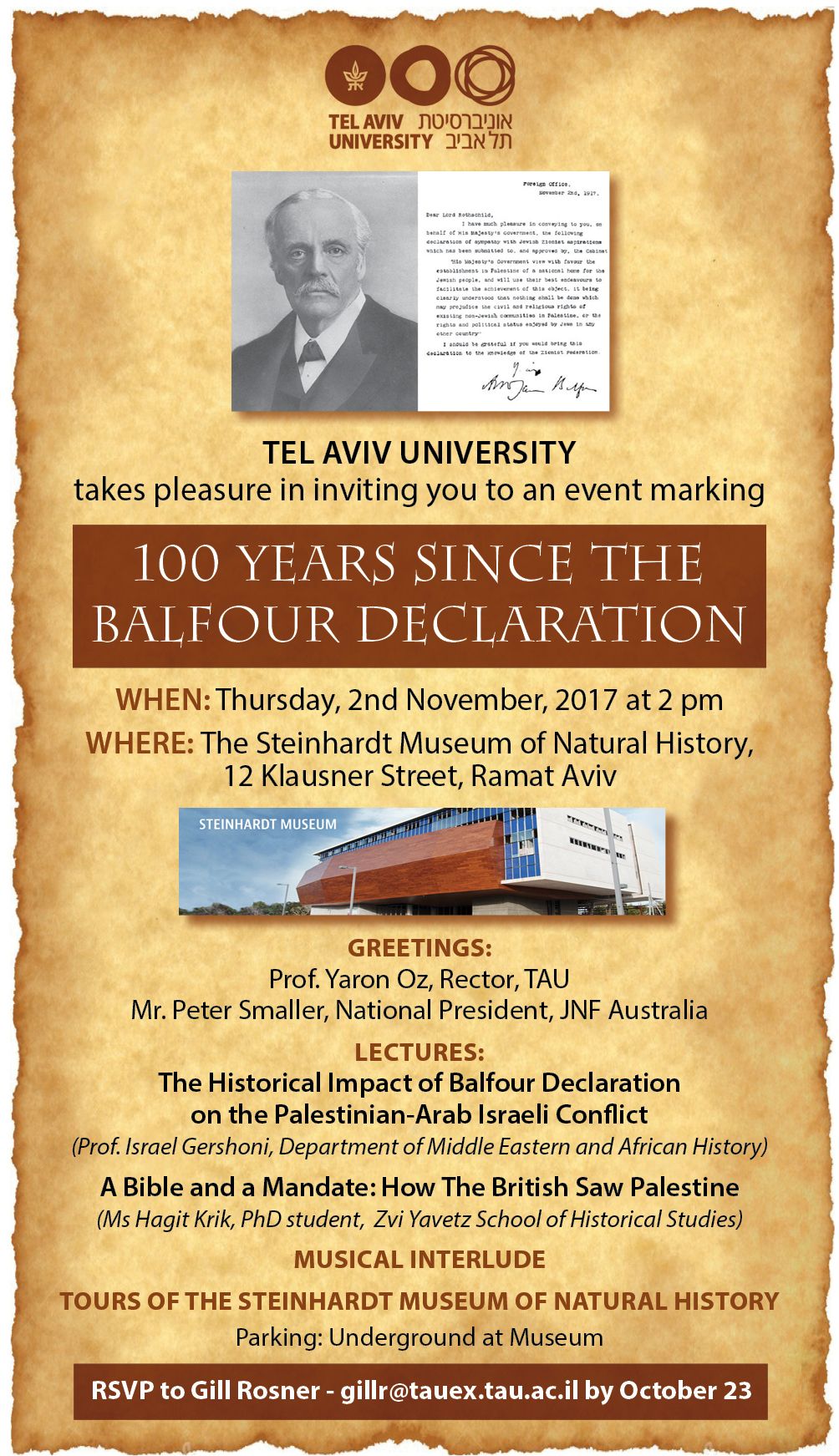 אוניברסיטת תל אביב מזמינה אתכם לאירוע לרגל 100 שנים להצהרת בלפור