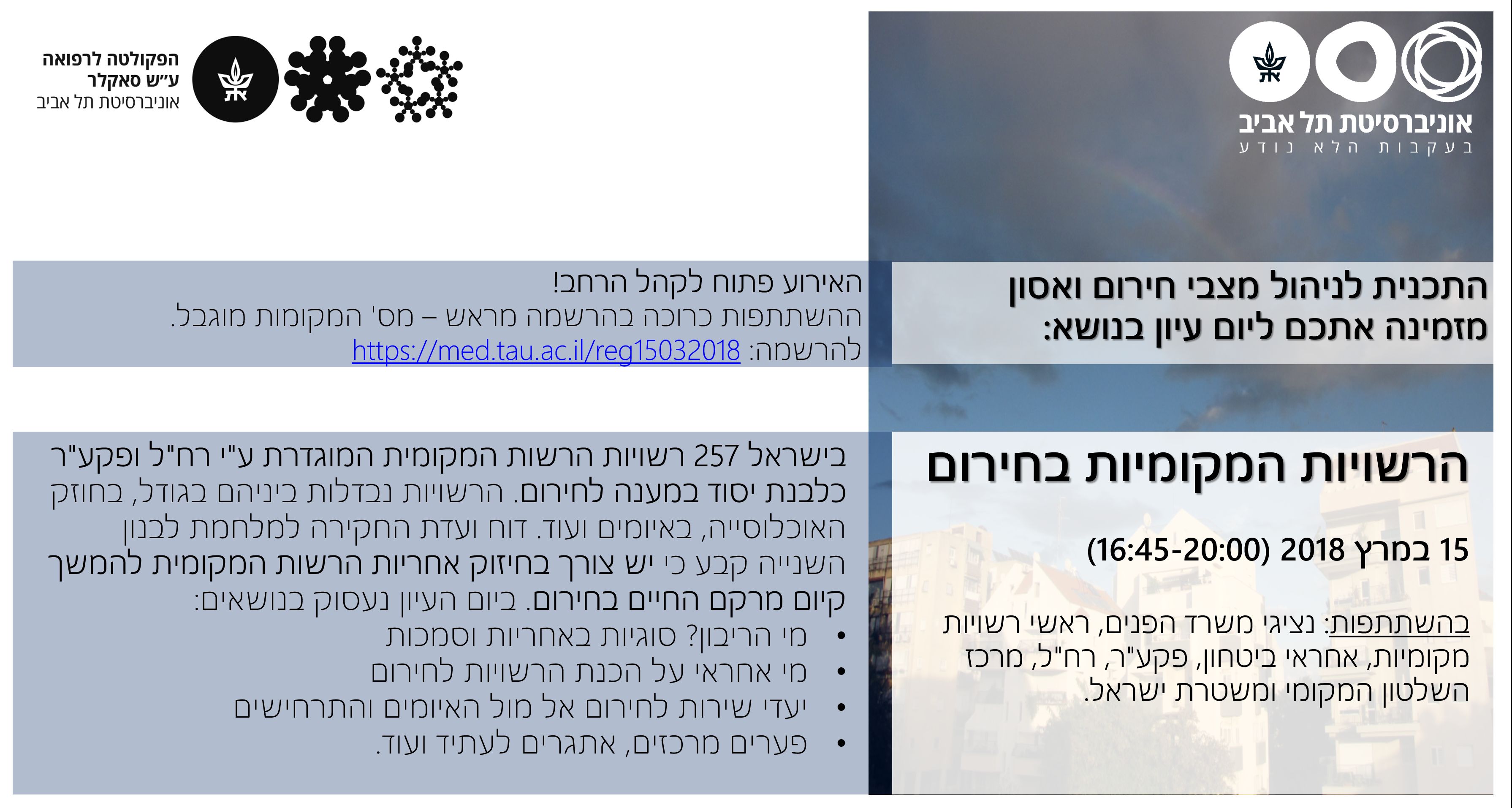 התכנית הרב-תחומית לניהול מצבי חירום ואסון מזמינה אתכם להירשם:
